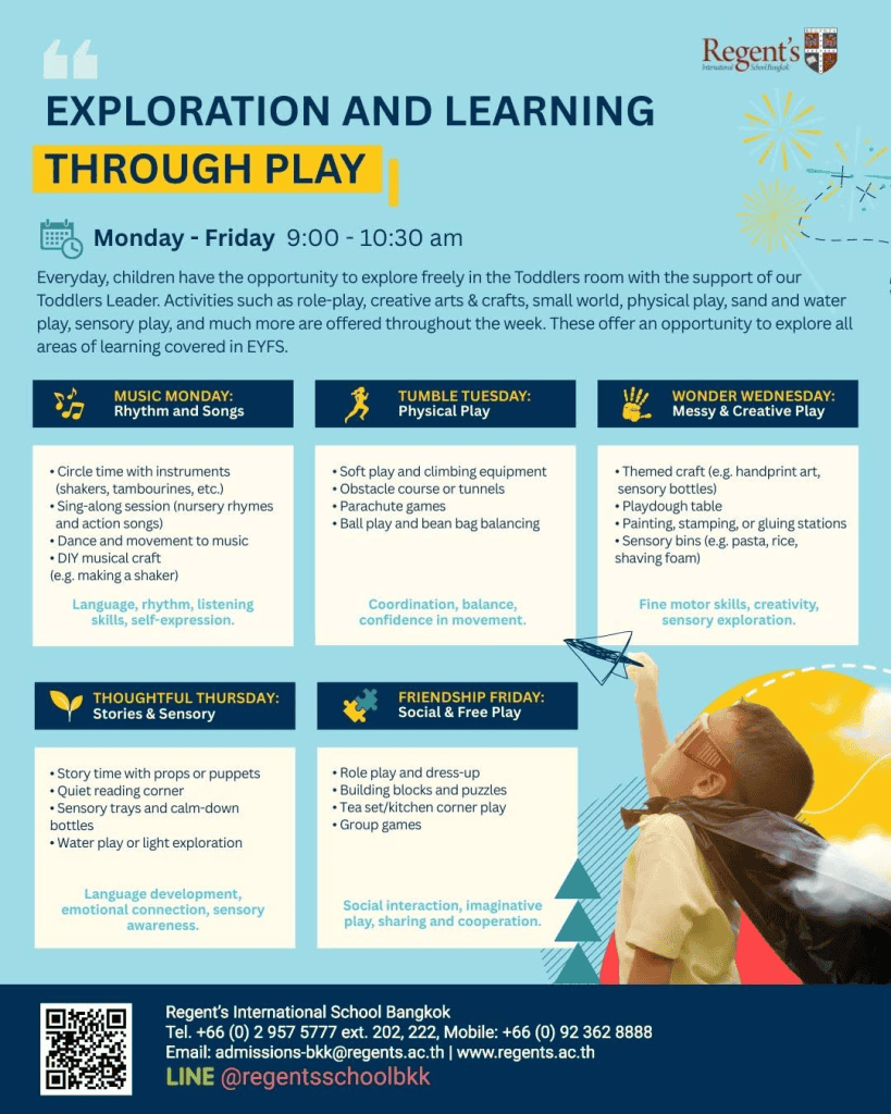 - Schedule: The playgroup runs on weekdays (Monday to Friday) from 9:00 to 10:30 a.m. (Bangkok time).