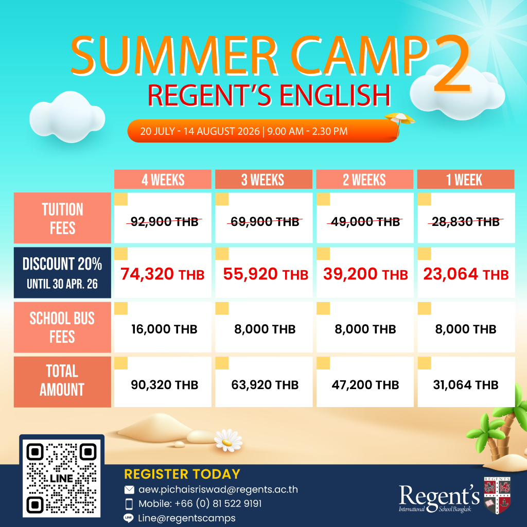 For more information, please contact Line@regentsschoolbkk, 081-522-9191
